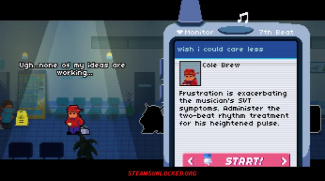 Rhythm Doctor throws you right into the action—you’re a doctor, and your job is to save patients by tapping the spacebar in sync with their heartbeat. The trick? You have to nail the timing on the 7th beat. Get it right, and your patient improves. But it’s never that simple. Each patient brings a new challenge, and the music keeps you on your toes with weird rhythms and offbeat patterns. The cool part is, the game actually teaches you as you go, so you never feel lost.