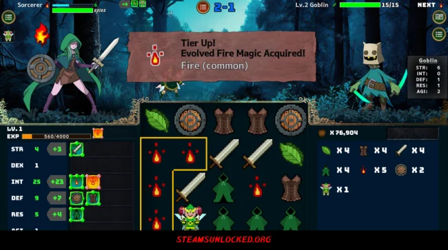 You’re the brains behind a sorceress’s journey in this deck-building roguelike. You spin reels, grab items, and connect them in clever ways to make her more powerful. Every combo you pull off upgrades her skills or gives her better gear—basically, you’re the reason she can take on tougher monsters. After each battle, you pick up some gold and hit the shop, grabbing new stuff or prepping her for whatever’s waiting in the forest.