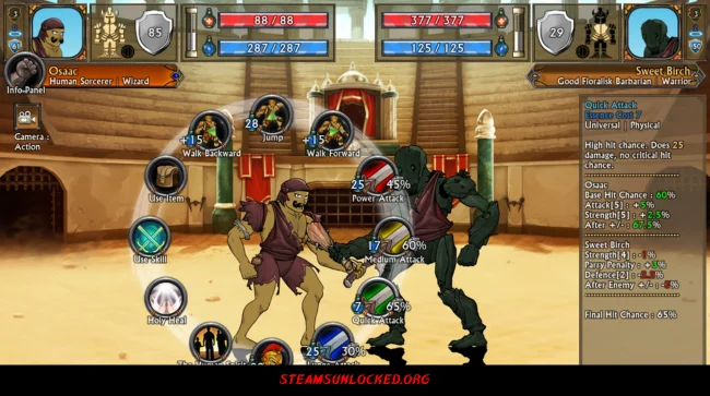 The game has fast turn-based battles where you can fight alone or with a teammate. You can avoid traps and jump over spiked pits while trying to win. You can even cut off arms and legs during fights, and your gladiator still keeps going. You can make your own gladiator by choosing their looks, size, and even their hometown. You also get special runes and blueprints to make your weapons and armour stronger in battle. You may also be interested in the game Worldbox.